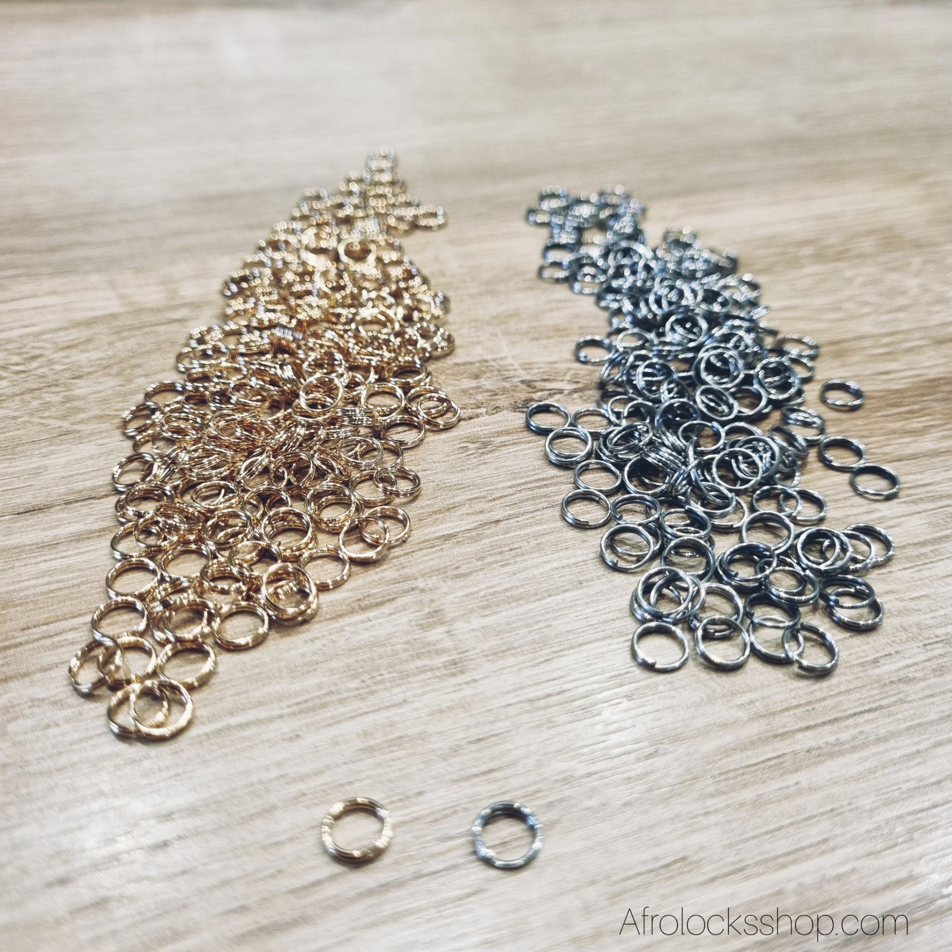 Ce lot de 200 anneaux métalliques dorés ou argentés (6 mm) permet d’embellir vos locks, twists et braids en un clin d’œil. Légers, solides et faciles à poser, ils ajoutent une touche dorée ou argentée parfaite pour toutes les coiffures afro.