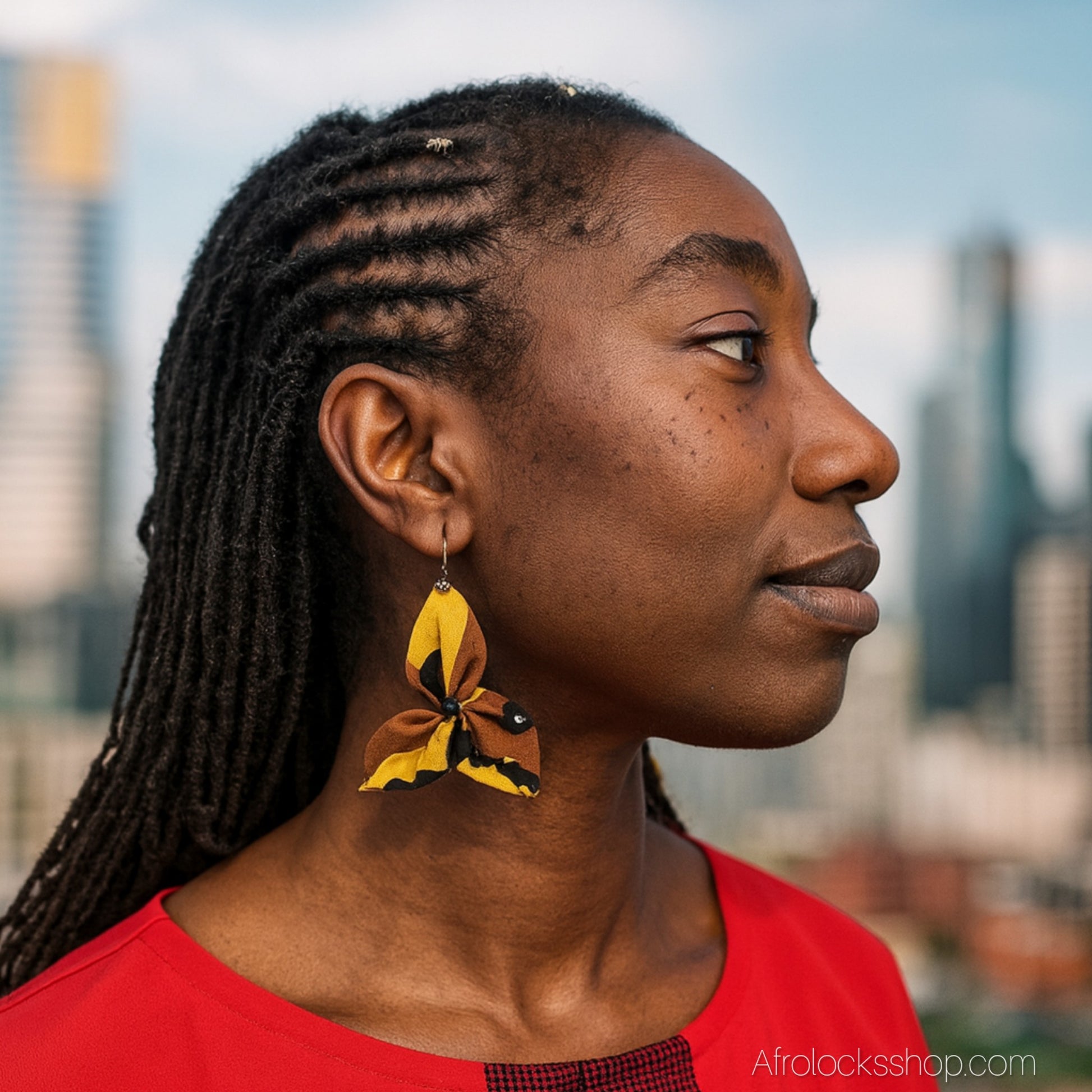 Boucles d’oreilles fleur en wax 🌺 – fait main au Sénégal (6×7 cm)