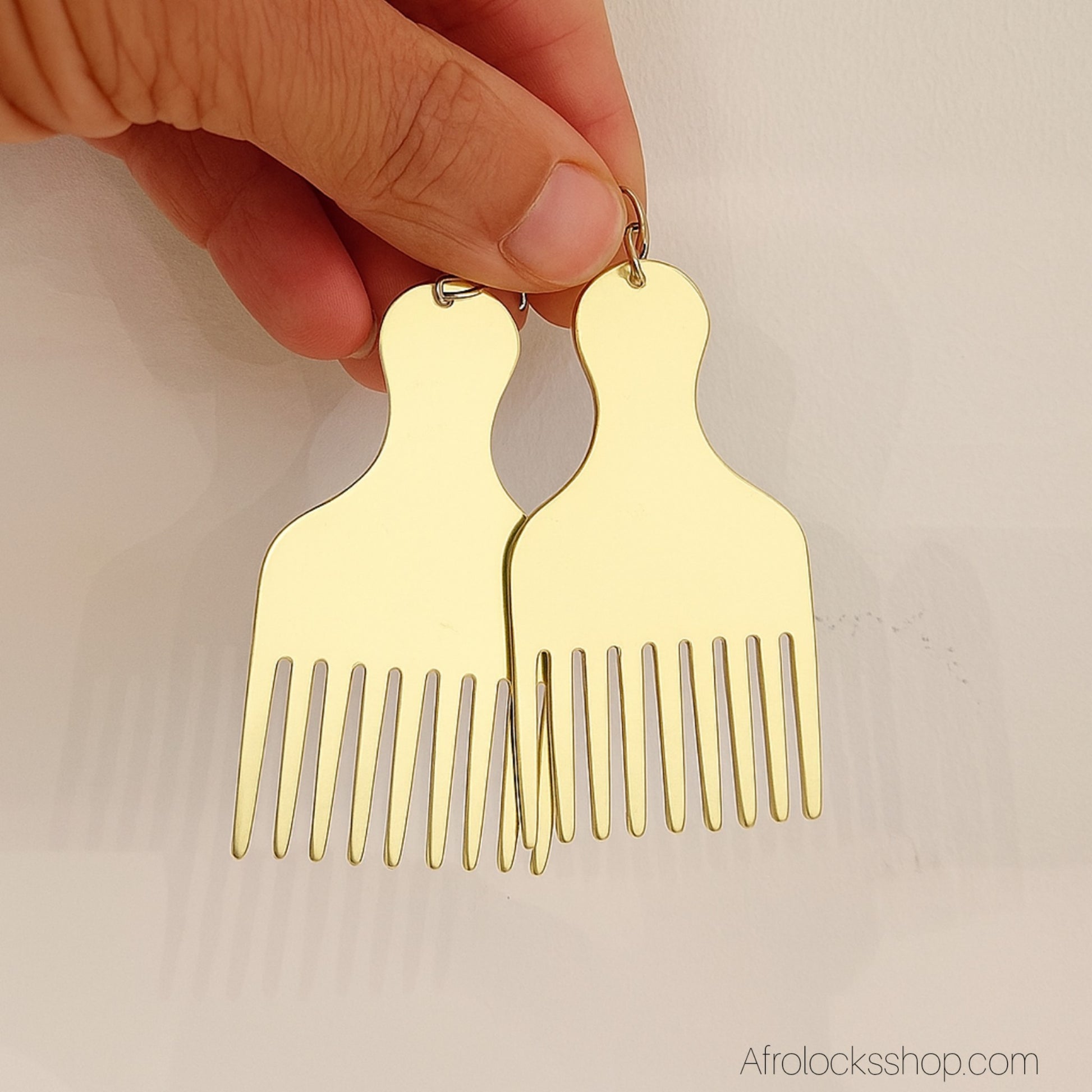 Boucles d’oreilles peigne afro – acrylique miroir or 4×7 cm – fin de série