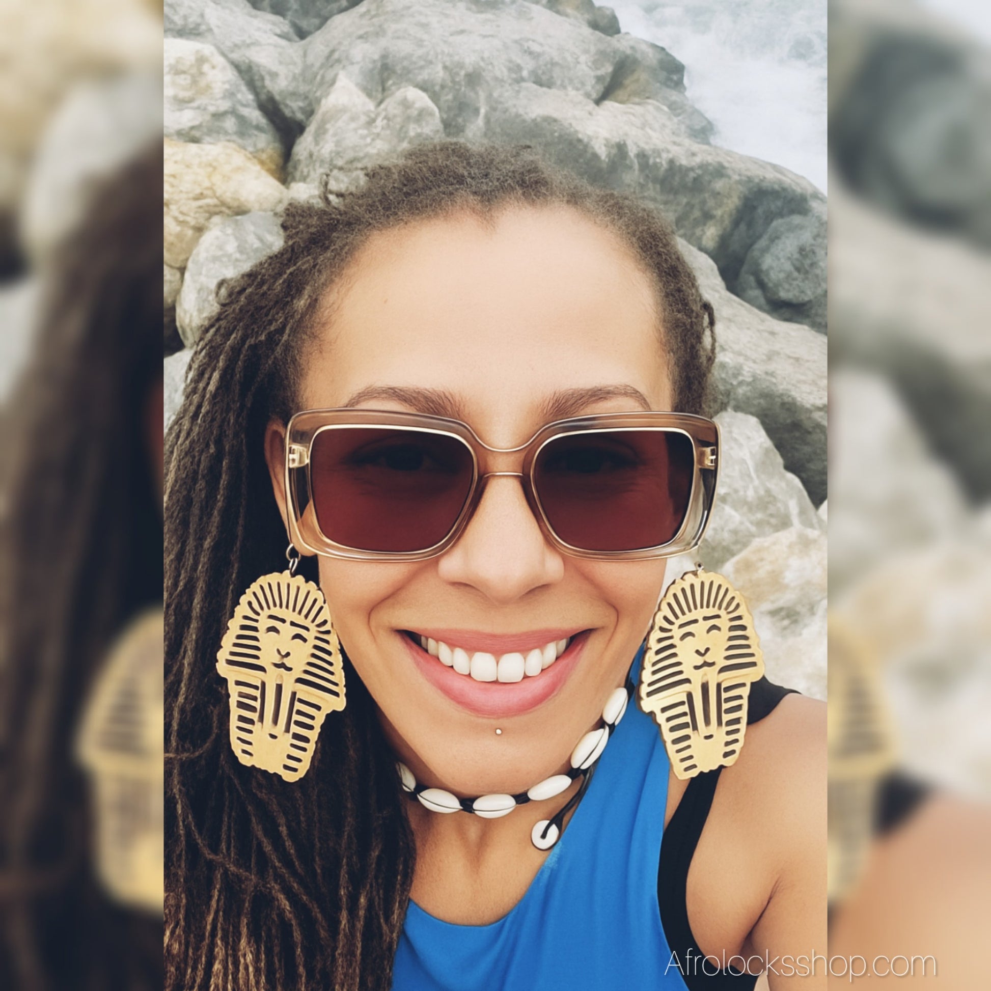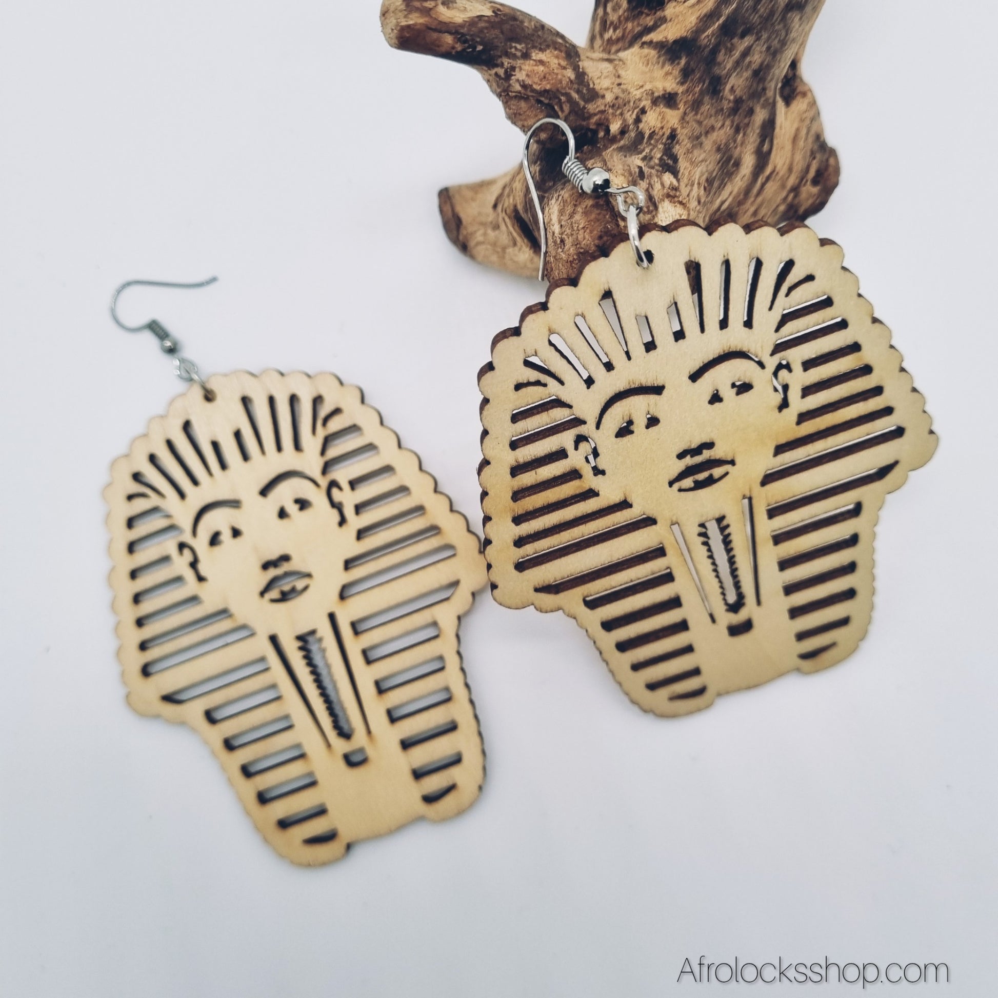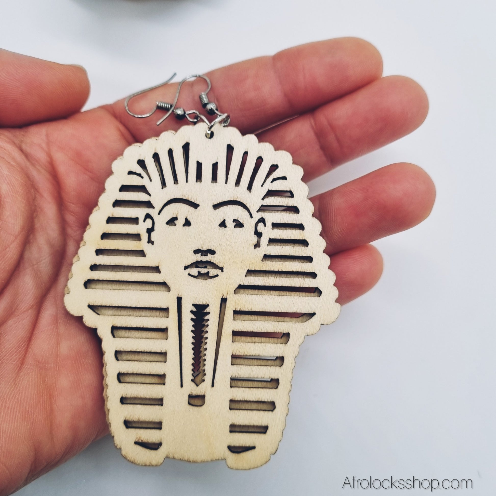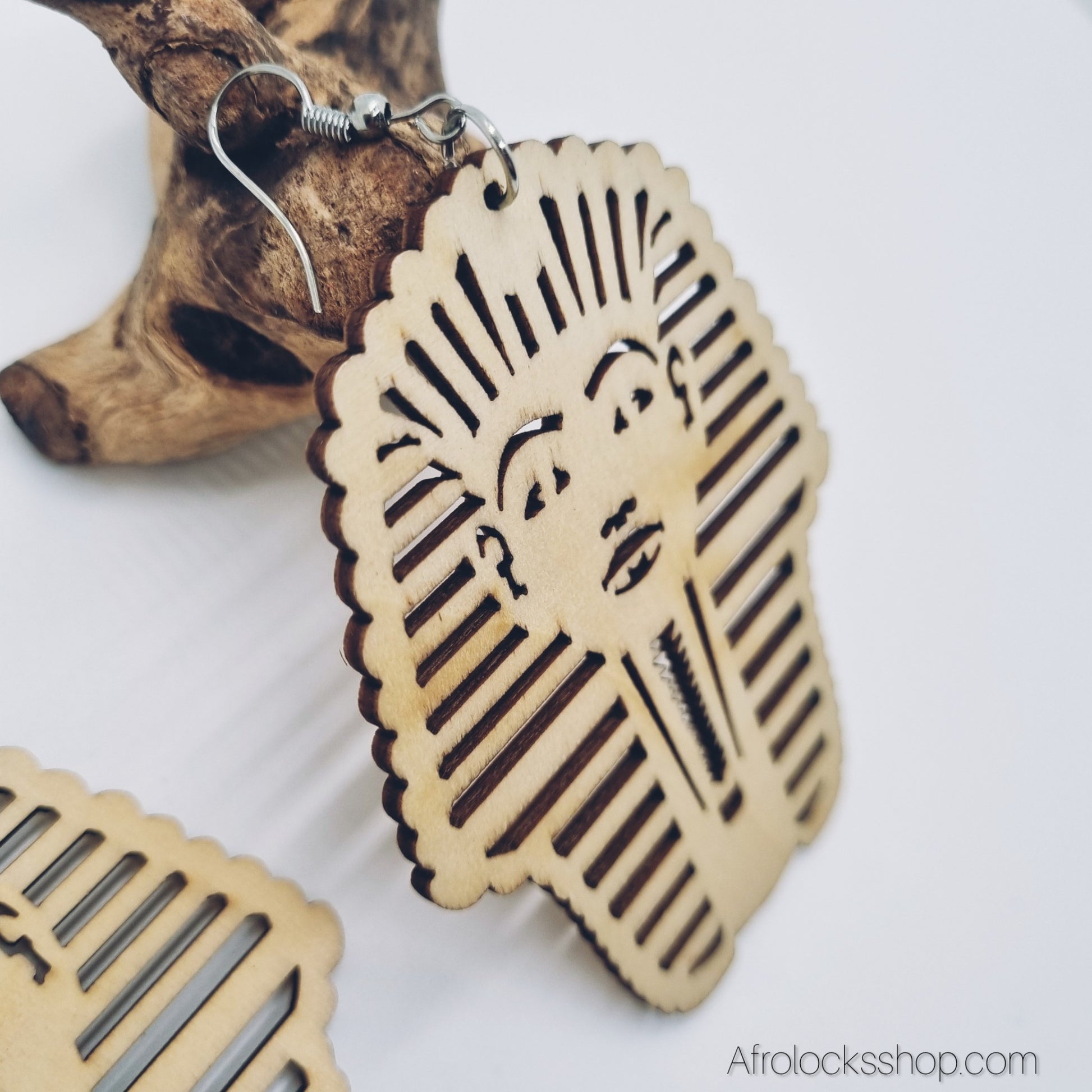 Affirme ton style avec ces boucles « Pharaon » inspirées de l’Égypte ancienne. Découpe bois légère, apprêts métal couleur argent, hauteur 8 cm : un effet XXL sans alourdir l’oreille. Parfaites sur locks, afro, tresses ou coupe courte ✨