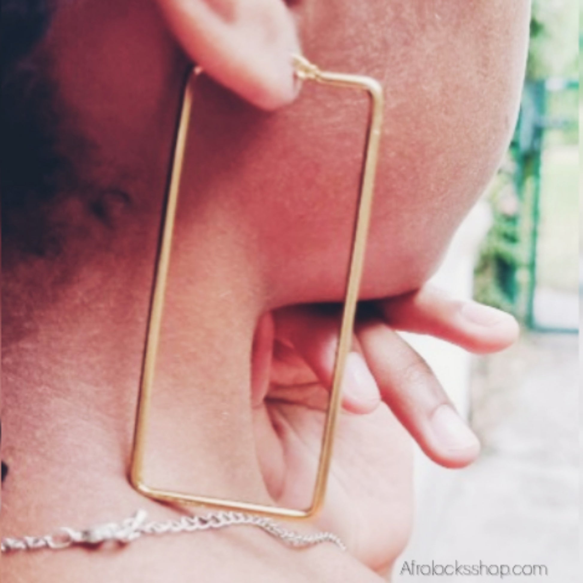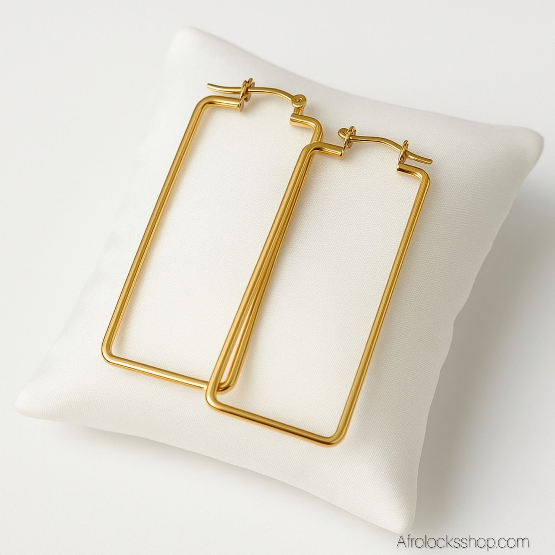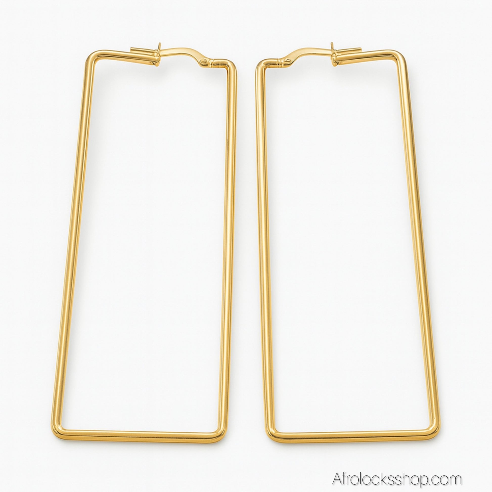 Boucles d’oreilles rectangles 7 cm – Acier inoxydable doré ✨