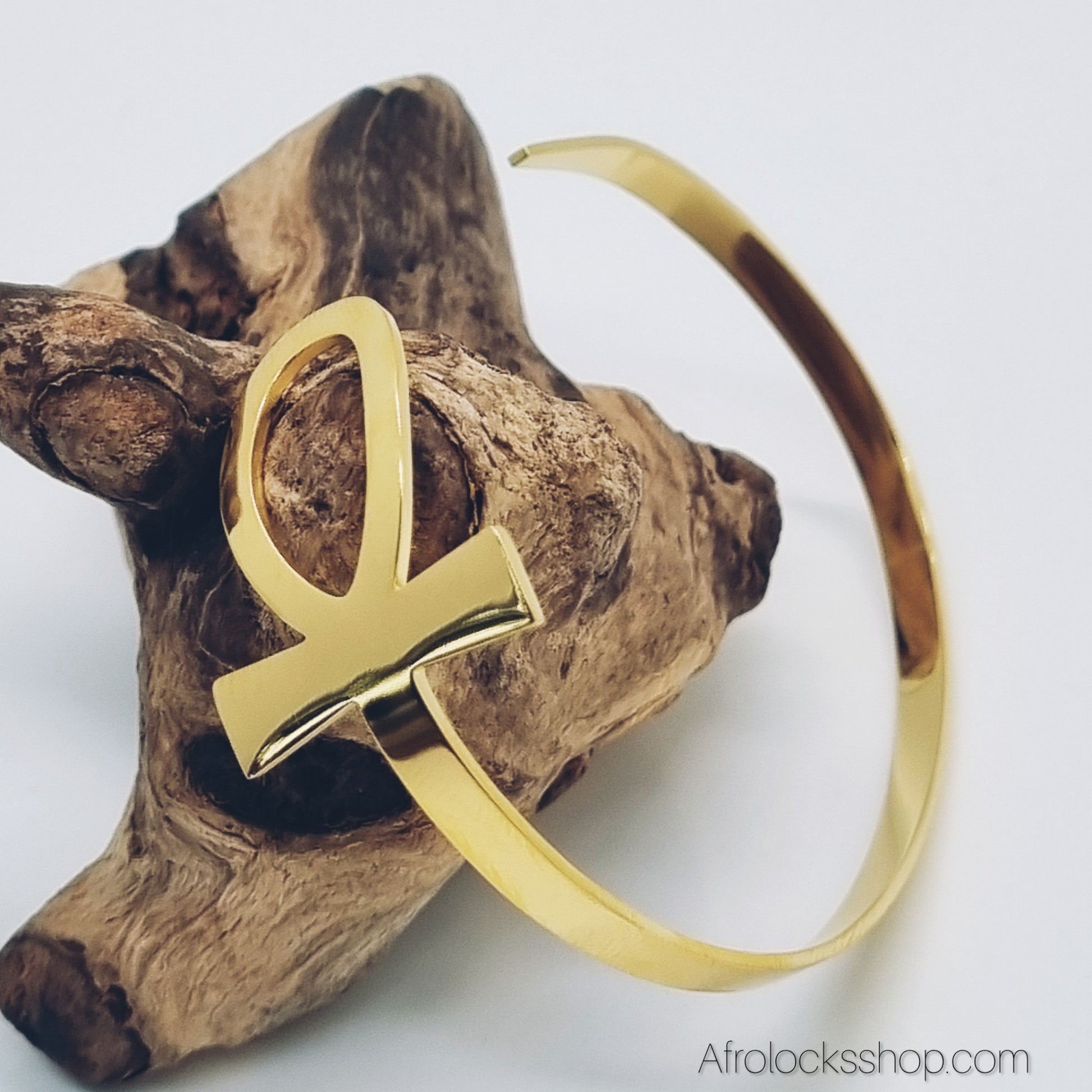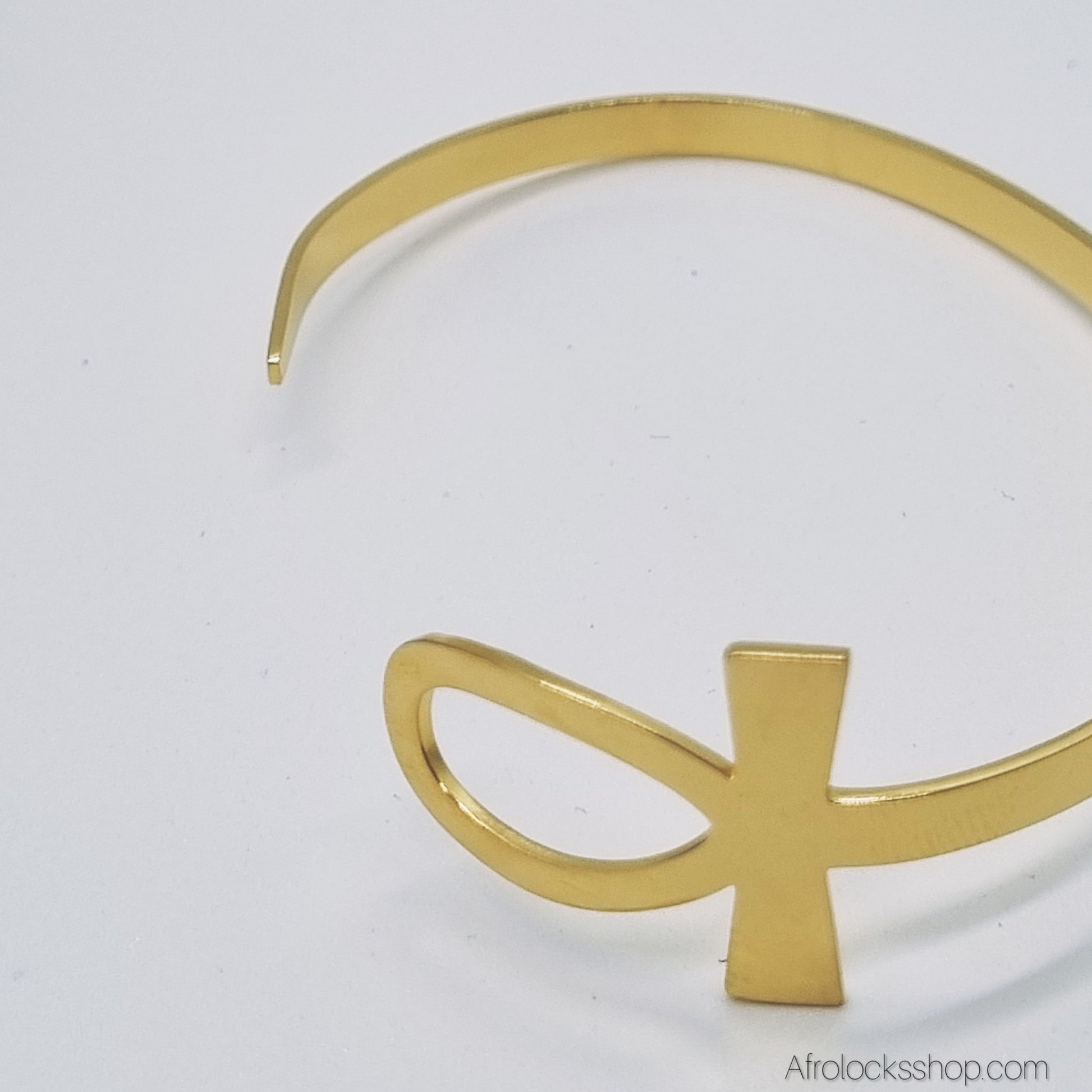 Bracelet Ankh – jonc doré en acier inox 316L, rigide & ajustable