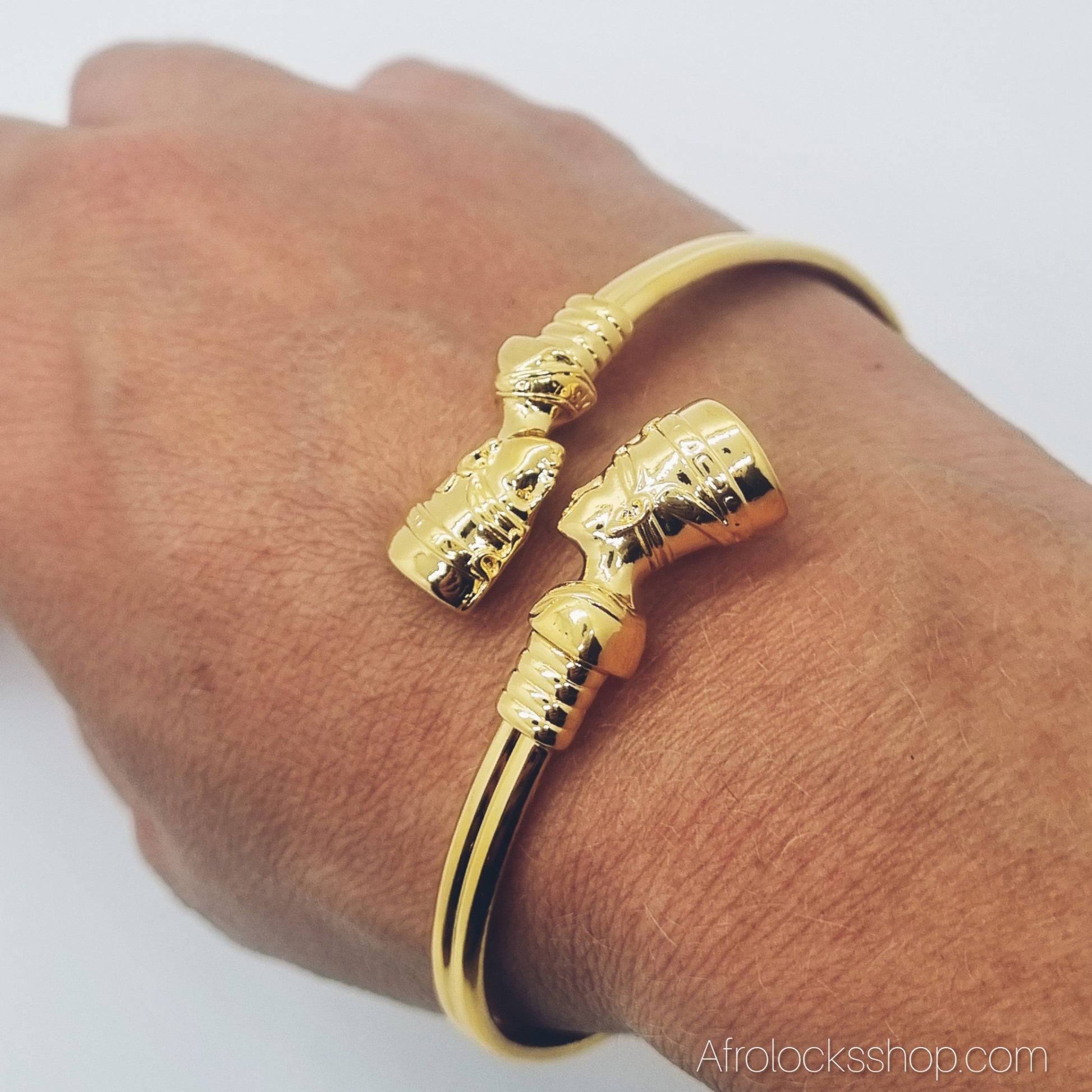 Bracelet Nefertiti – acier inoxydable 316L doré, jonc ajustable (unisexe)