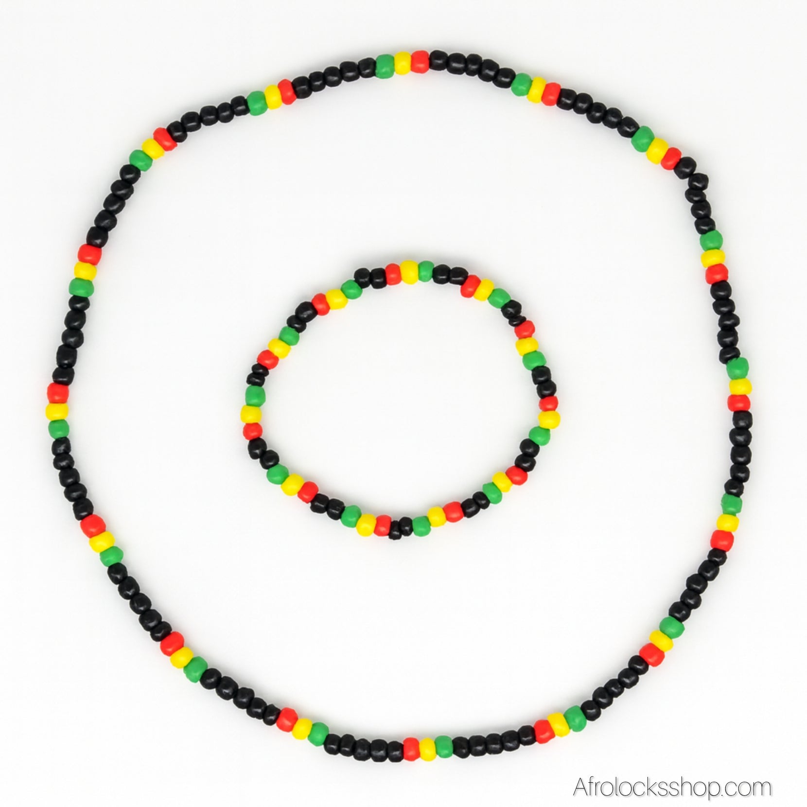 Collier et Bracelet Rasta en perles – fait main, élastique, unisexe