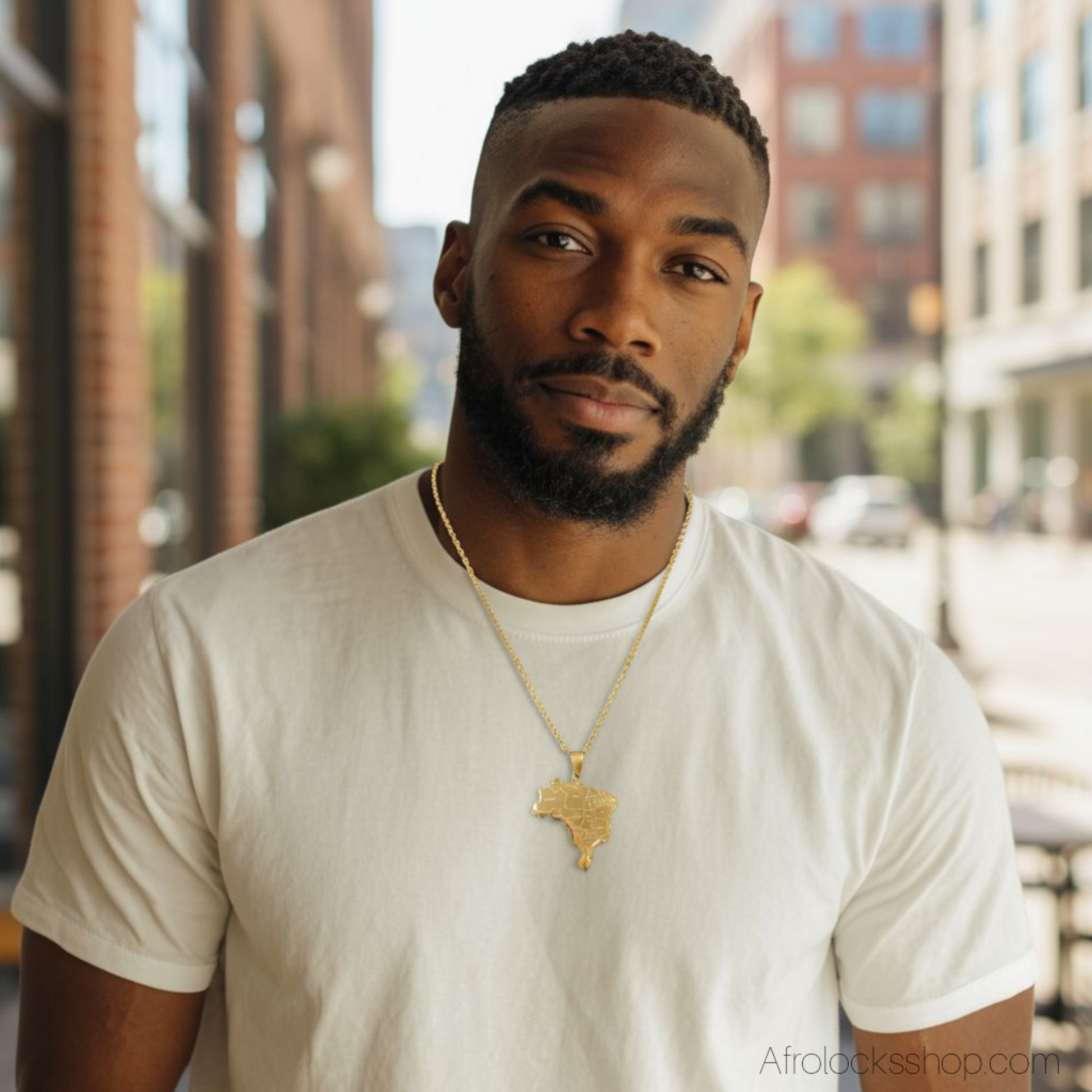 Collier « Carte du Brésil » – Acier inoxydable 316L doré (chaîne 50 cm)