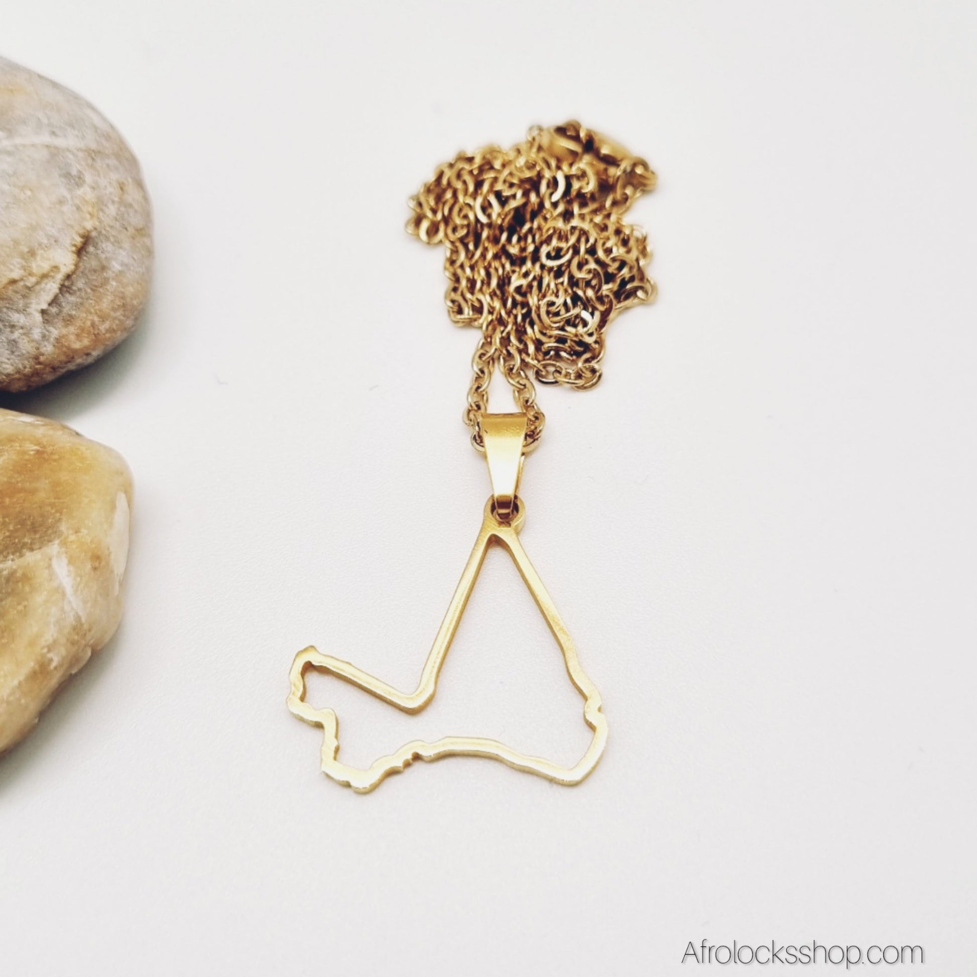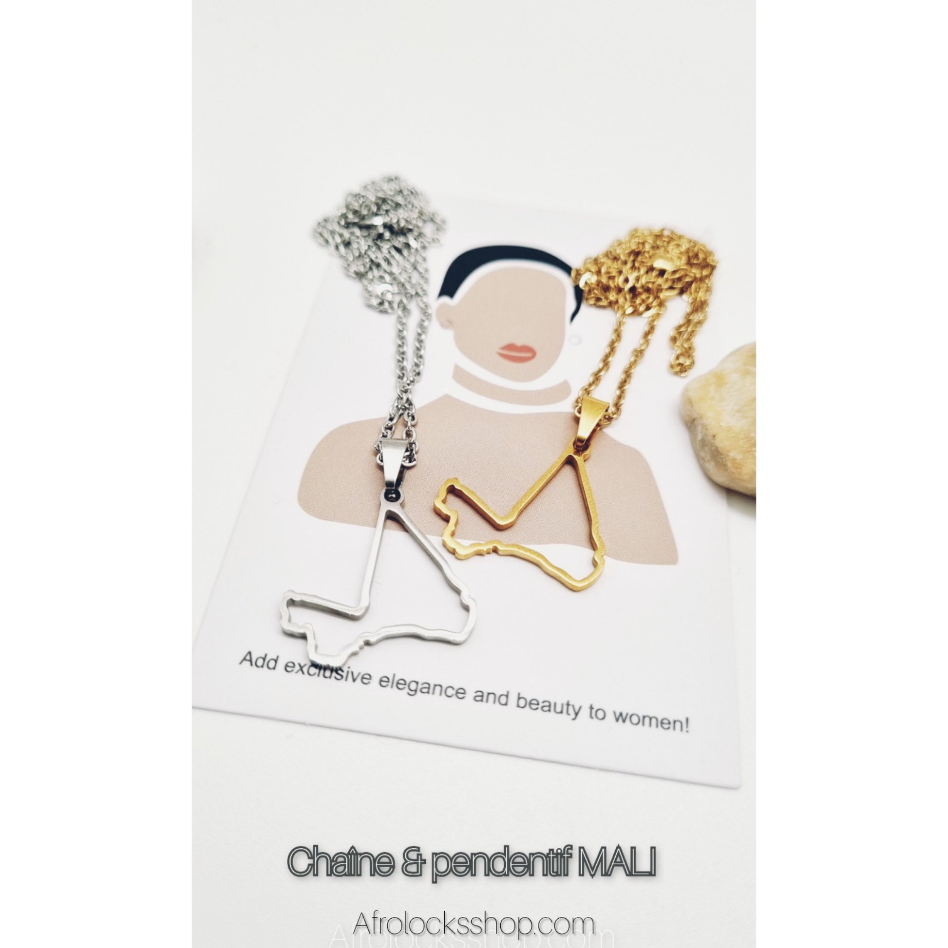 Collier Carte du Mali – Acier inox 316L (Doré ou Argenté) – Chaîne 50 cm