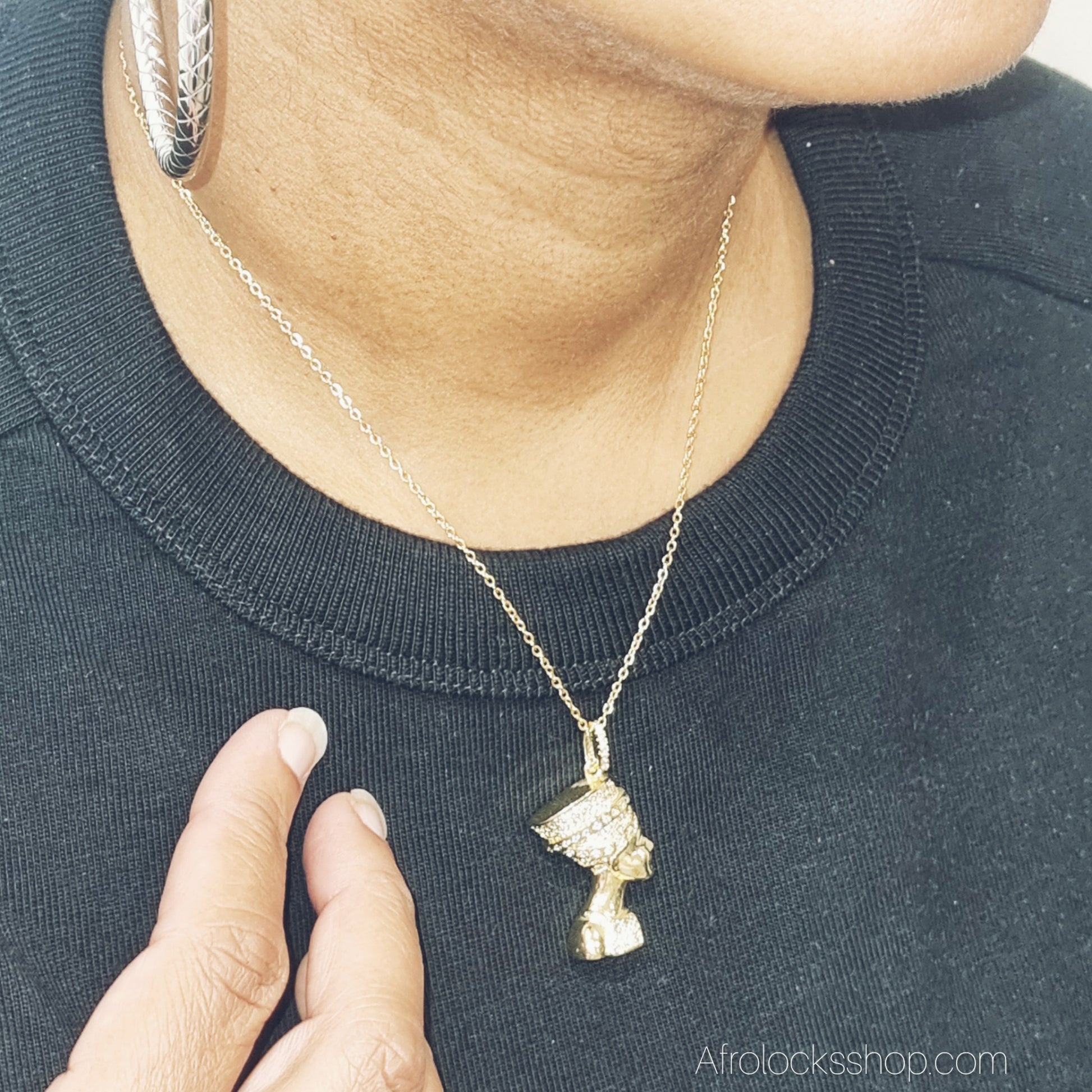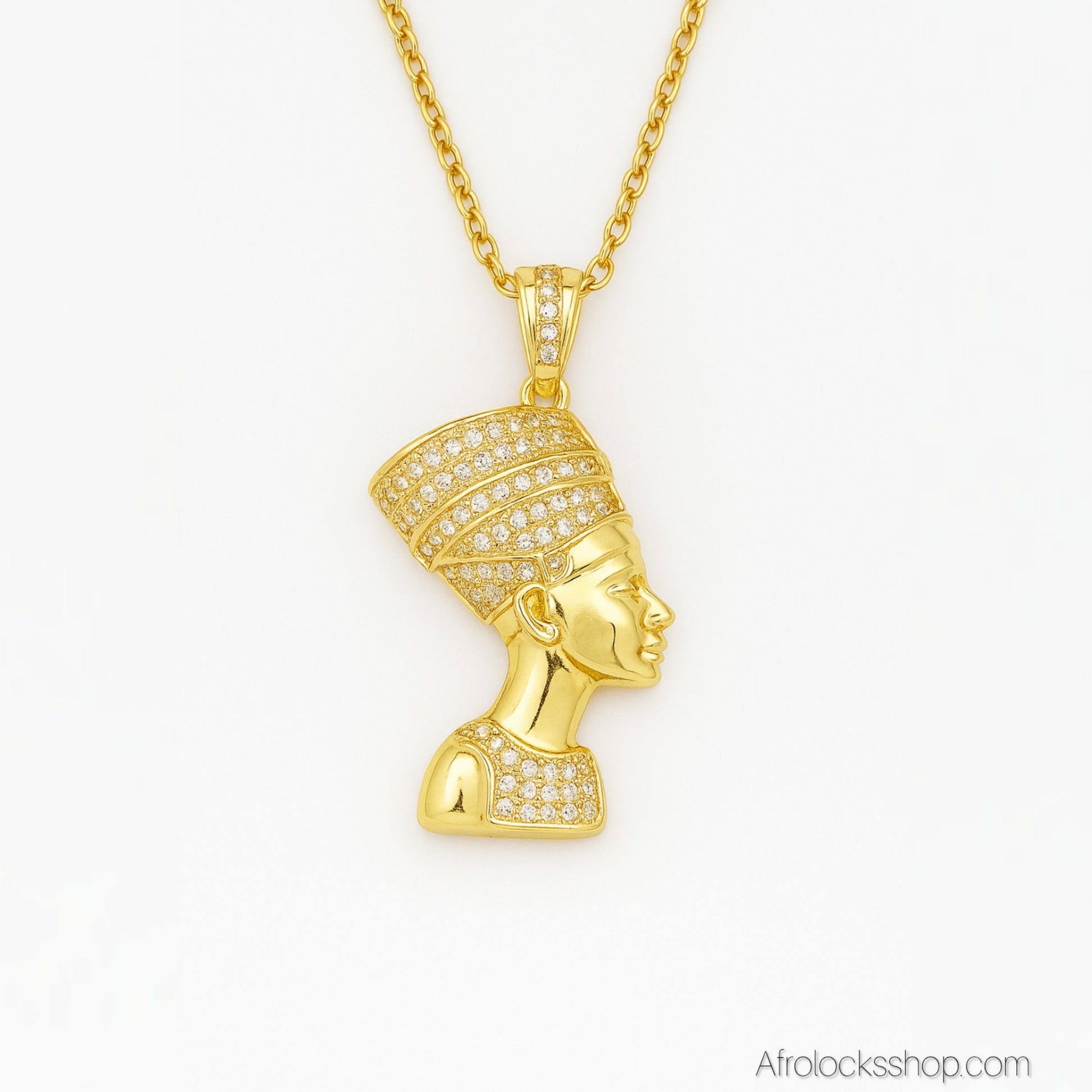Collier Nefertiti – acier inoxydable & zirconium – chaîne 50 cm, pendentif 2×4 cm (doré)