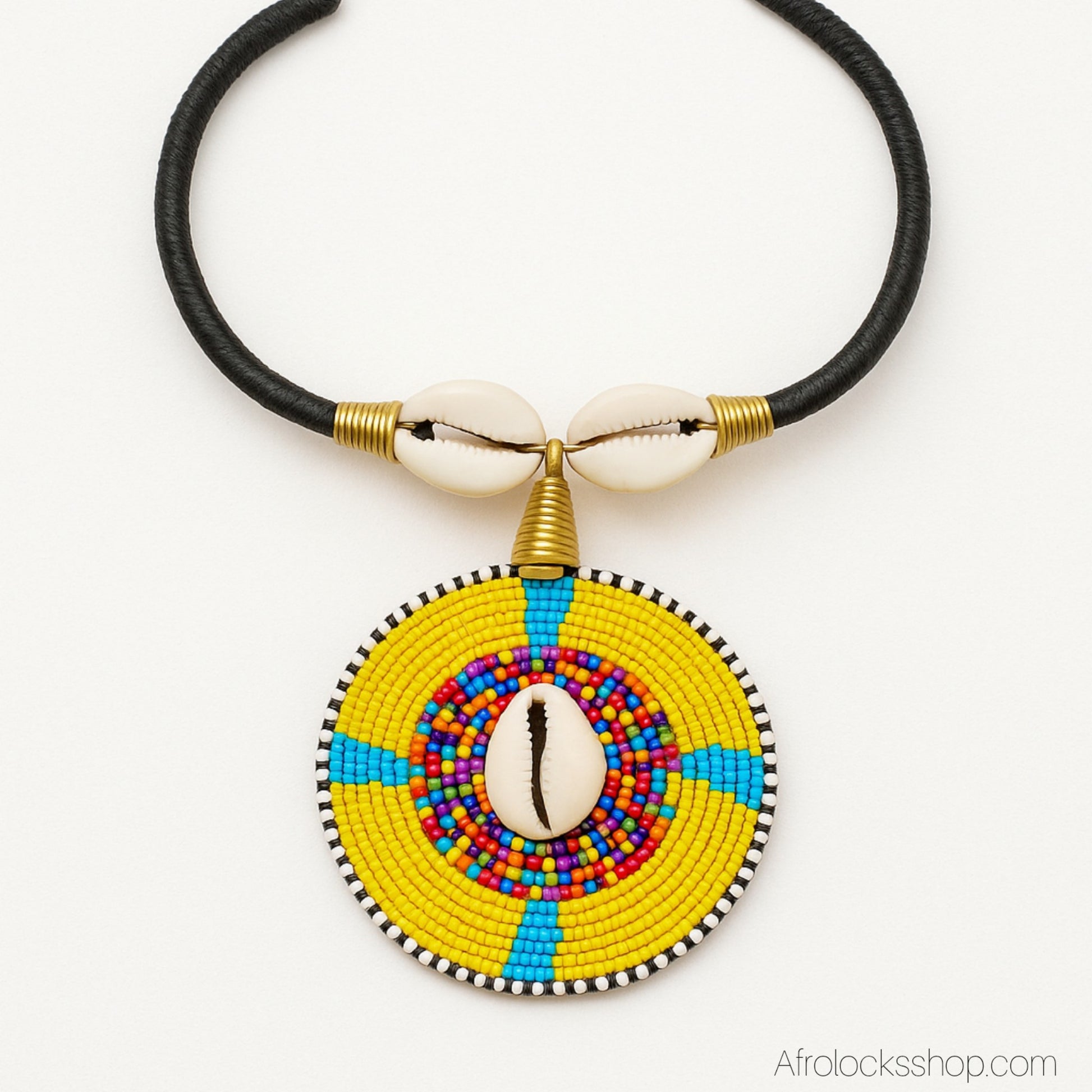 Collier ras-de-cou cuir, perles & cauris – fait main au Kenya 🇰🇪