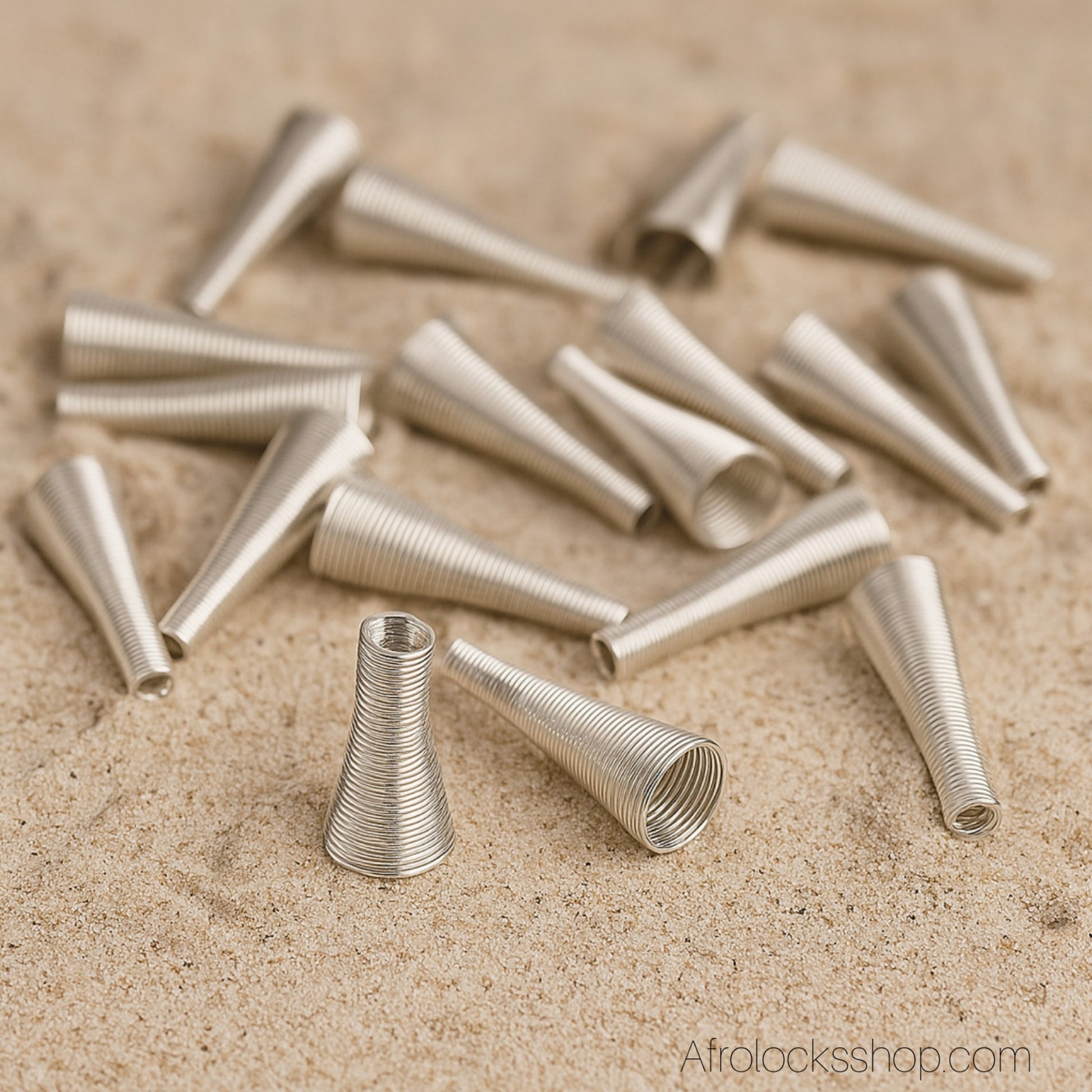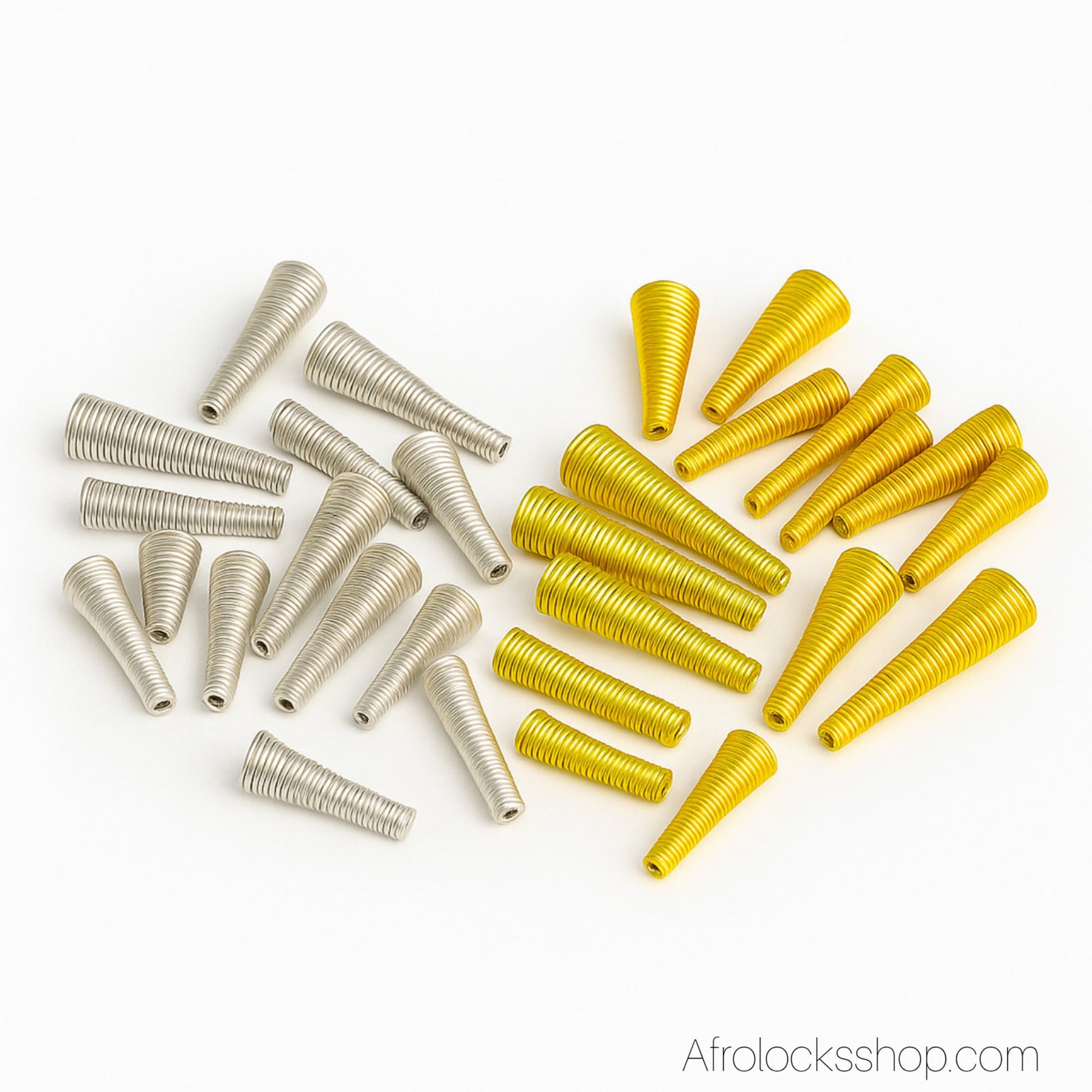 Lot 50 bijoux cônes spirales pour microlocks et sisterlocks – doré ou argenté