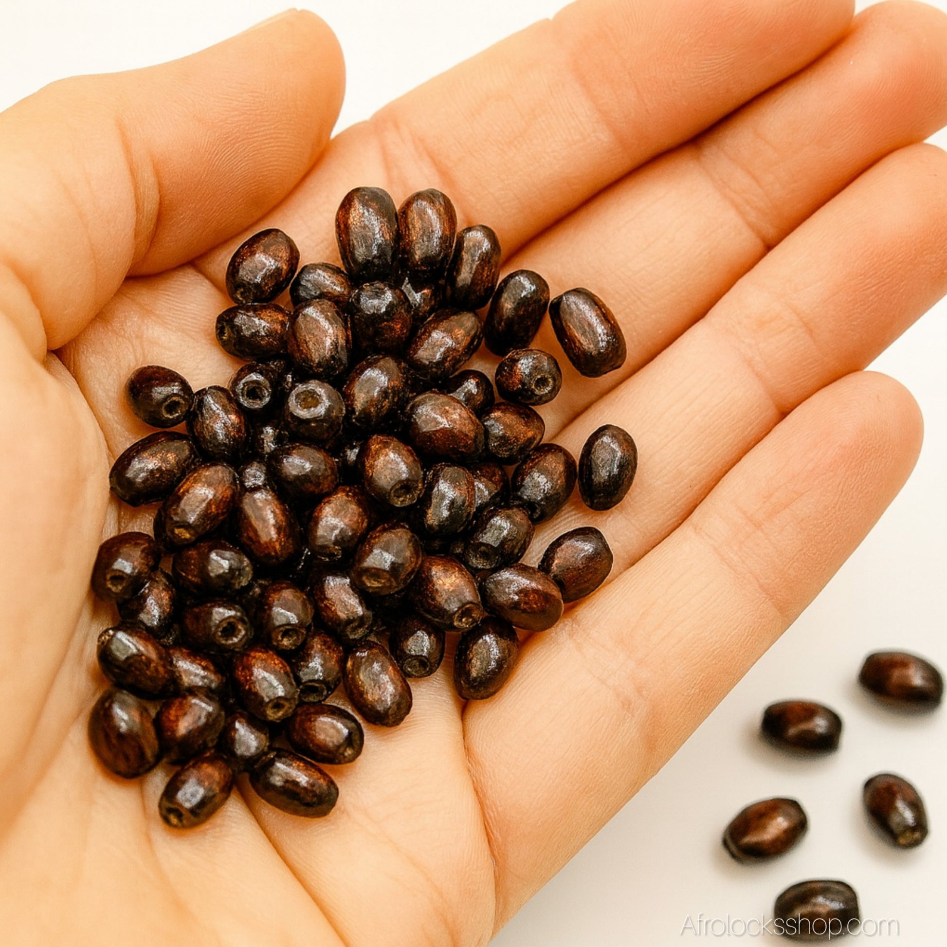 Perles en bois marron – 500 pcs (7 mm, trou 1,5 mm) • Sisterlocks, tresses, DIY 🌰