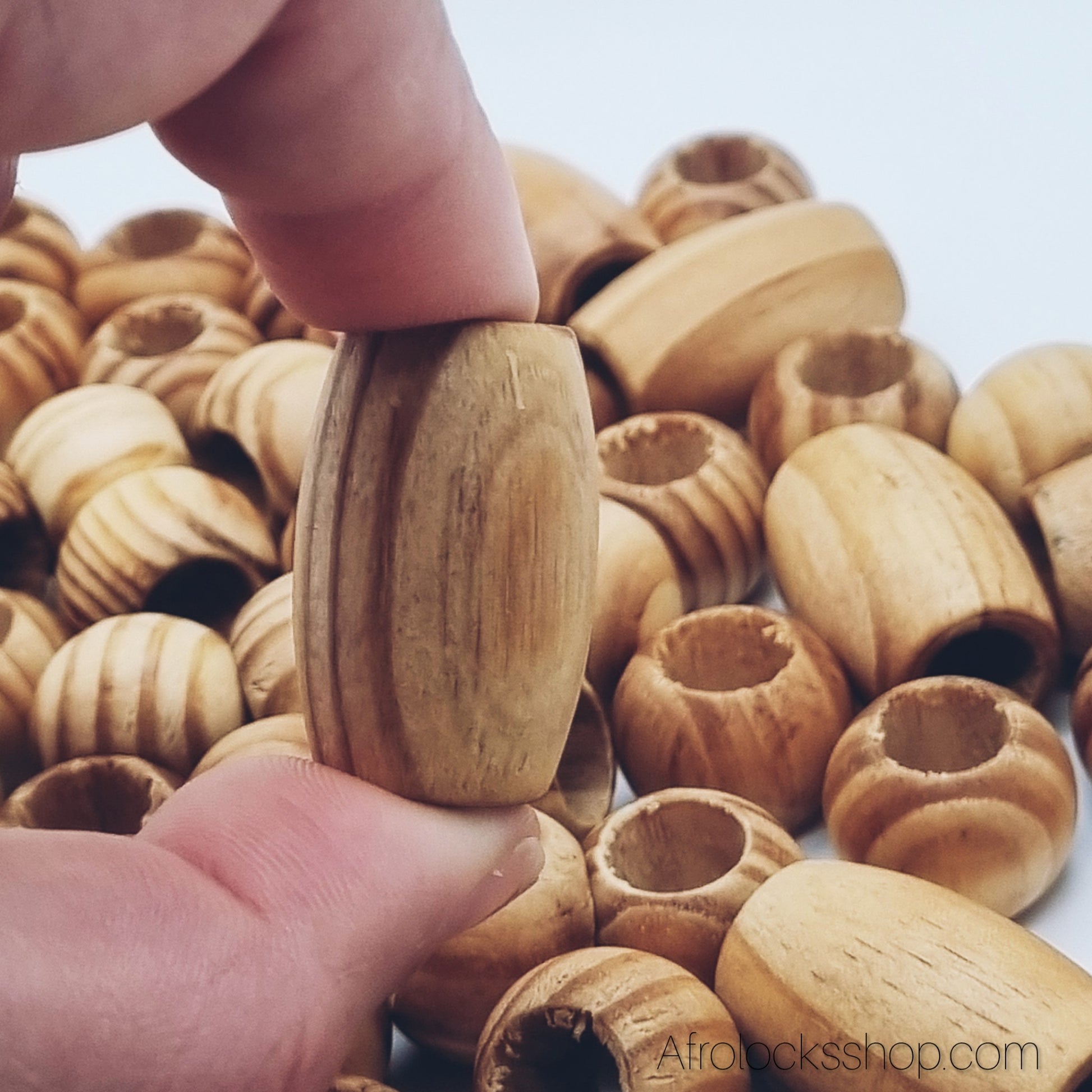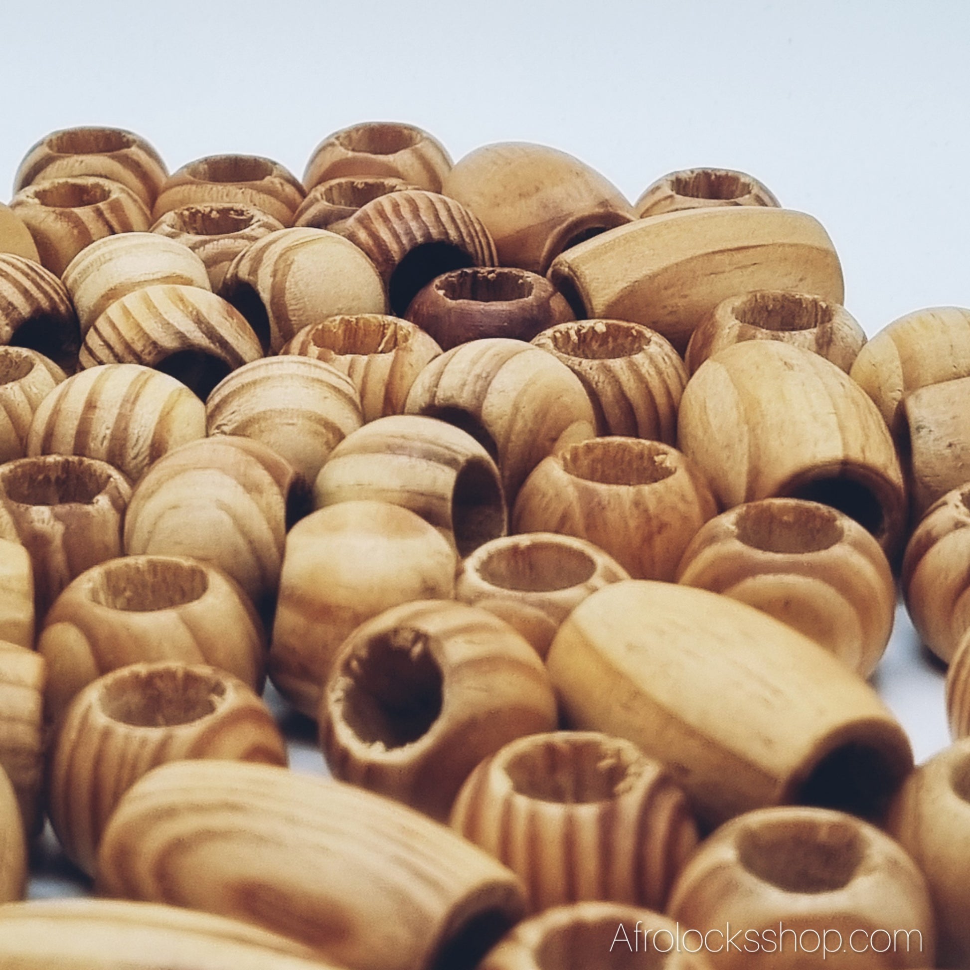 Lot de 100 perles en bois – trou 10 mm – rondes Ø1,5 cm & ovales 3 cm – spécial locks, tresses et DIY