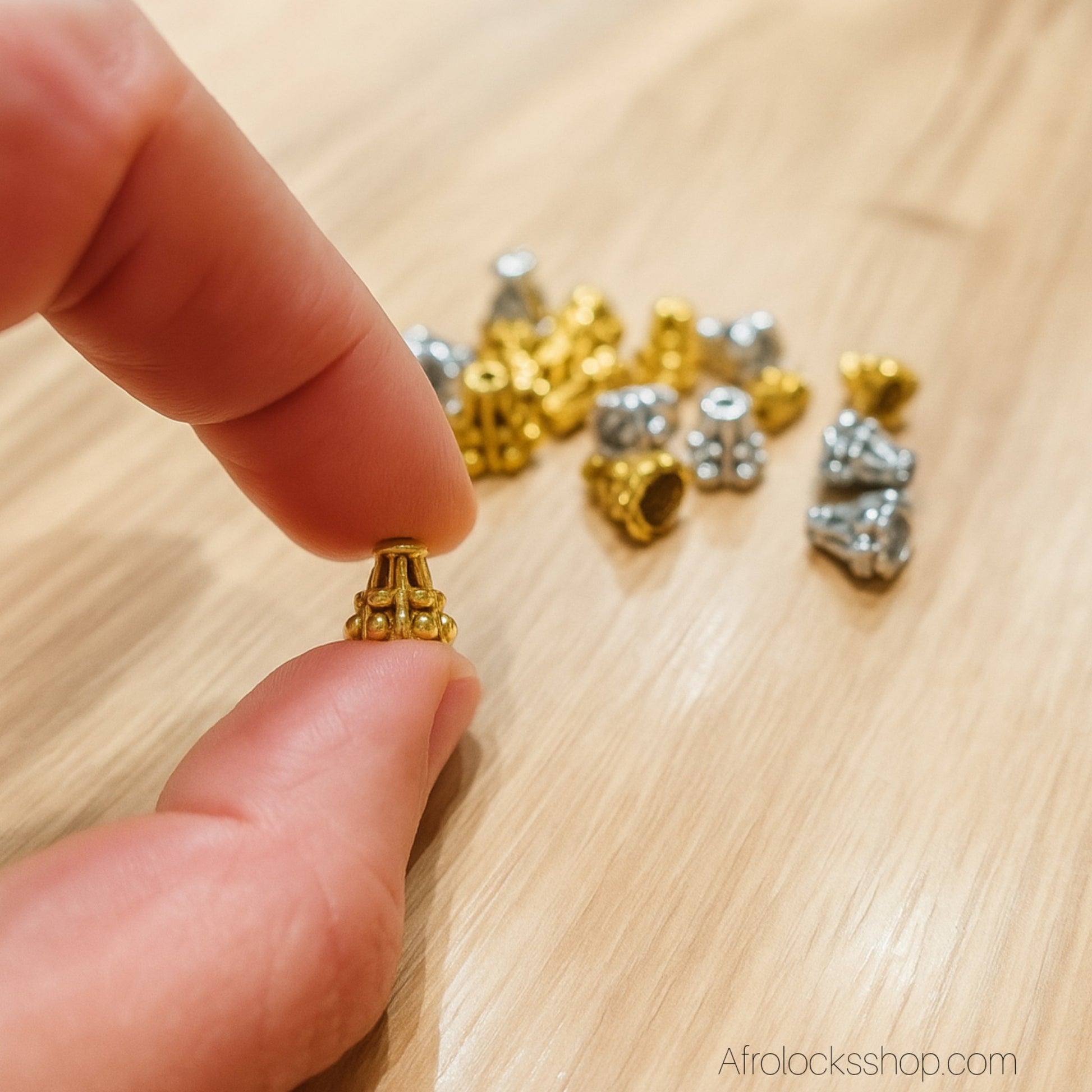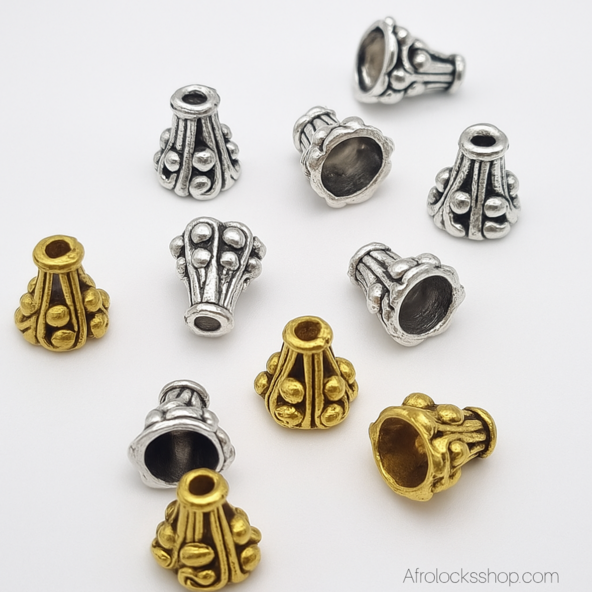 Lot de 20 perles coniques en alliage de zinc, mix doré/argenté. Parfait pour microbraids, microlocks, microtwists.