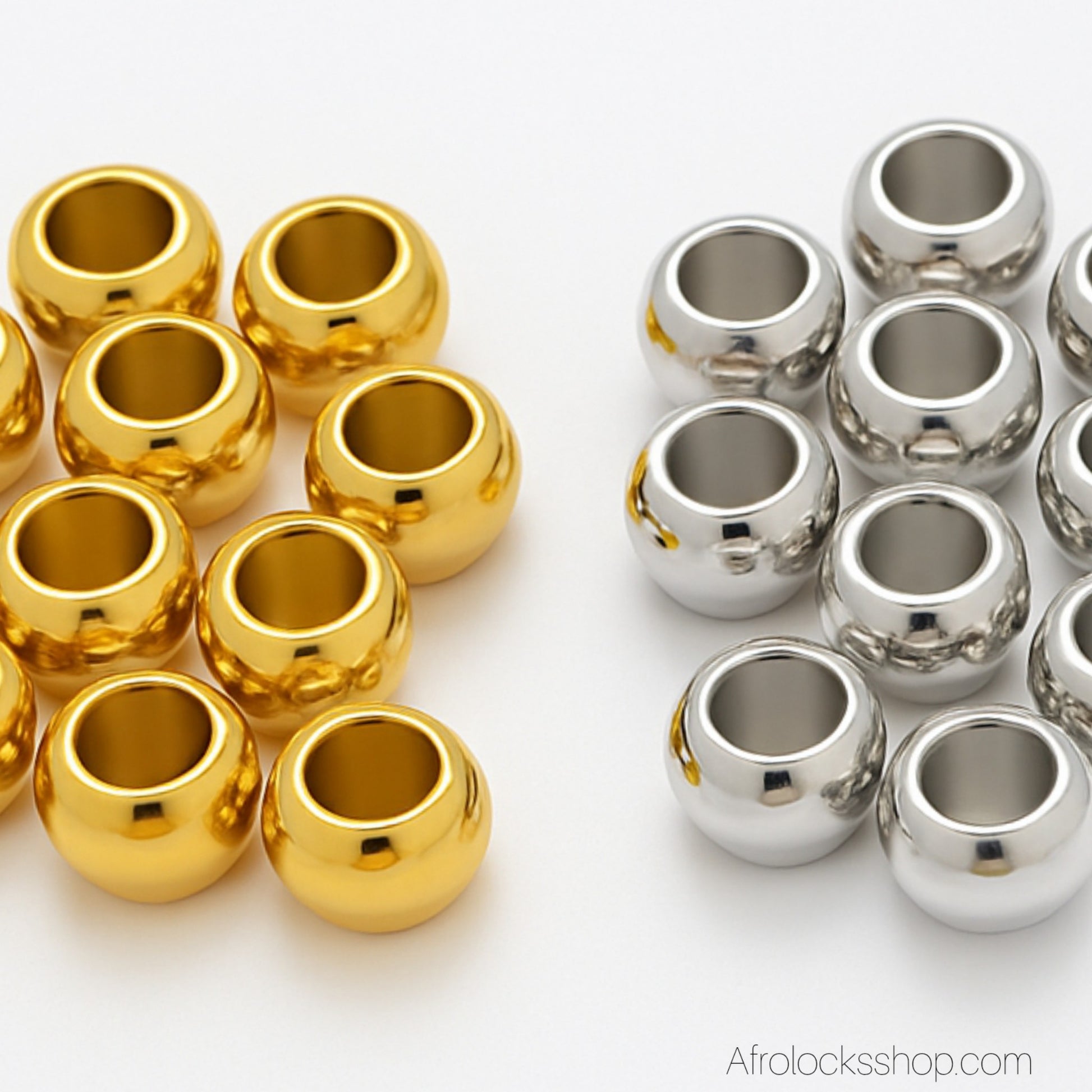 Perles pour dreadlocks – lot 30g - 40 à 50 – acrylique doré ou argenté – Ø 12 mm, trou 7 mm