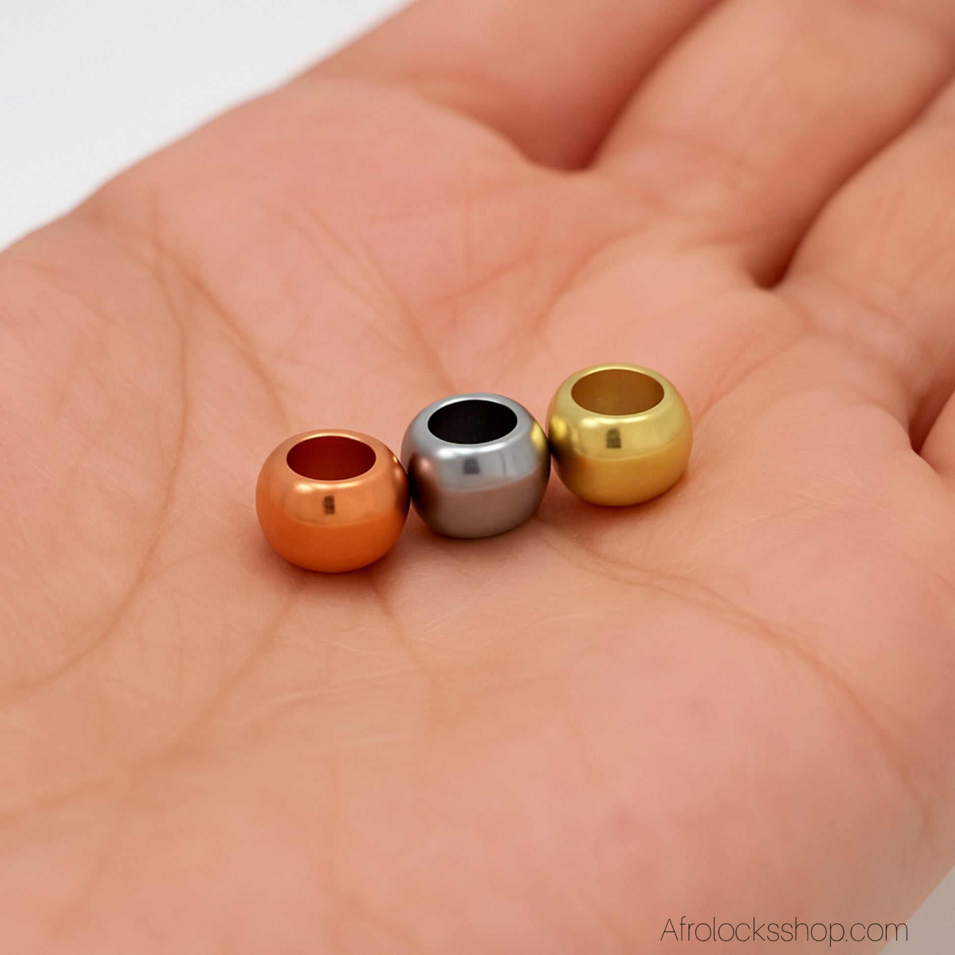 Lot de 20 perles en acier inoxydable pour microlocks et sisterlocks. Bords doux, brillance durable, plusieurs diamètres pour un ajustement parfait.