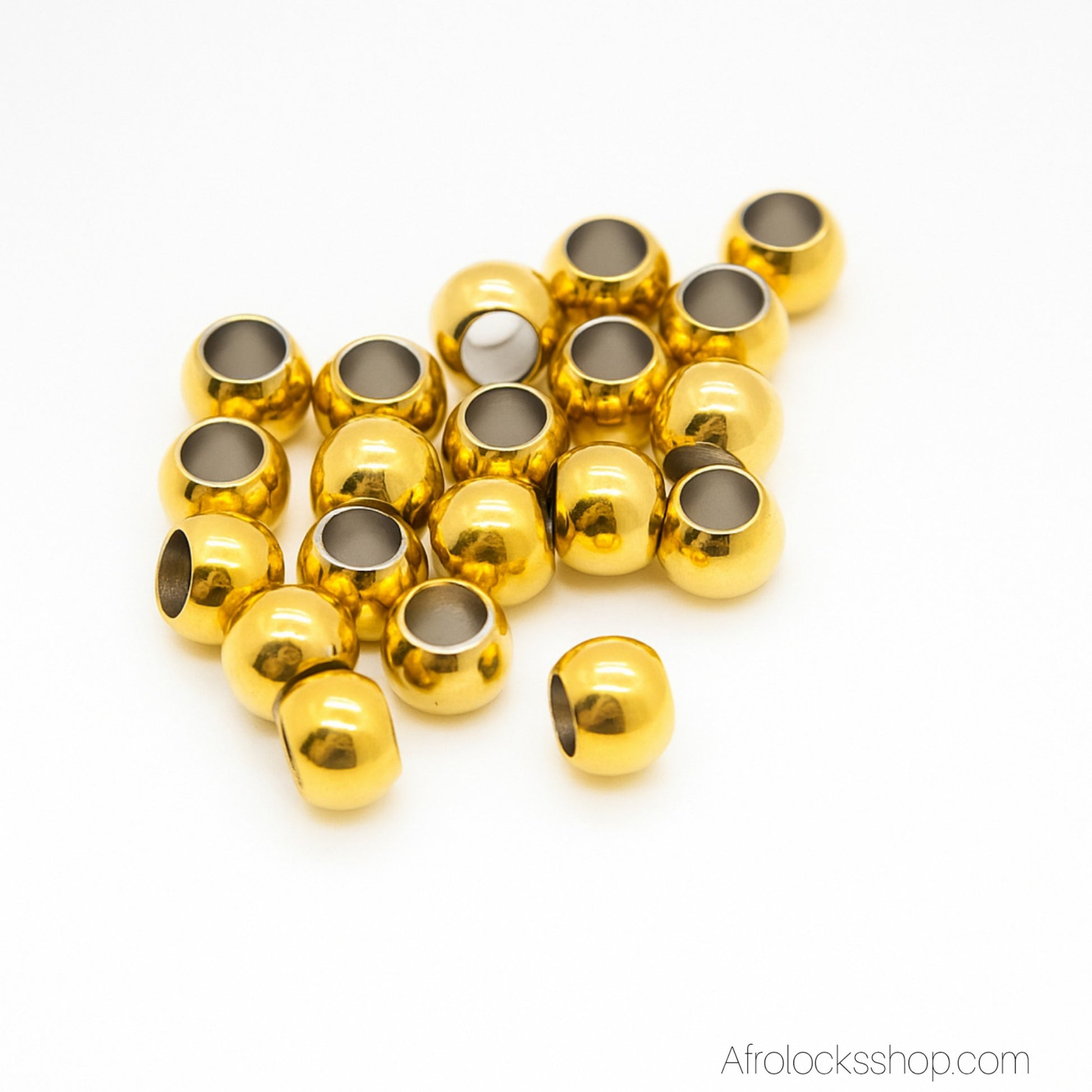Perles spéciales microlocks & sisterlocks – inox (lot de 20) – 5 tailles de trou – argent/or/or rose – or PVD sur 2 & 3 mm