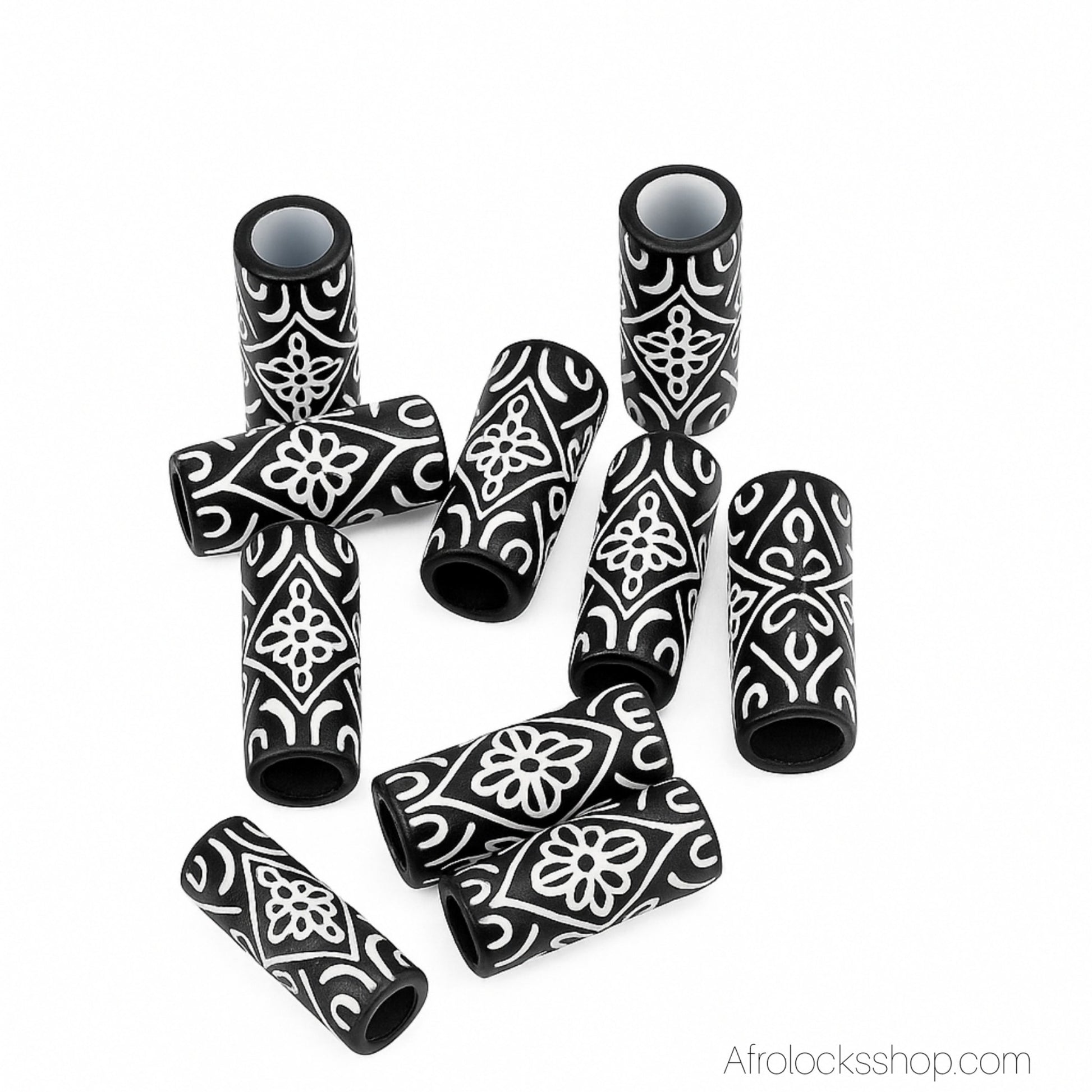 Ces 10 perles tubes/tonneaux (10×26 mm) au trou large de 6 mm glissent facilement sur locks moyennes/épaisses, tresses ou barbes. Légères, confortables et durables, elles structurent instantanément un style bohème/tribal.