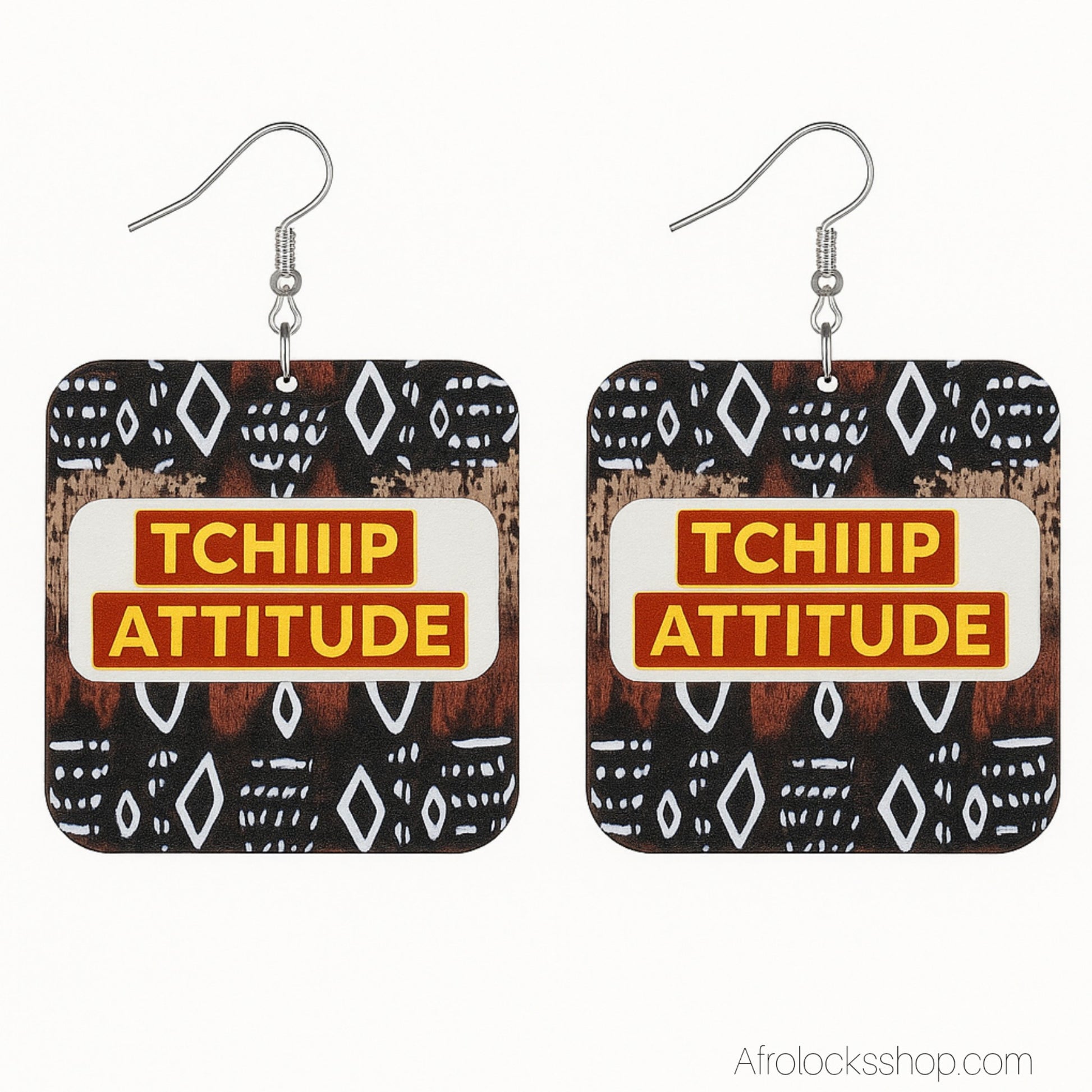 Boucles d’oreilles “TCHIIIP ATTITUDE” – bogolan – grand format léger (6×5 cm)