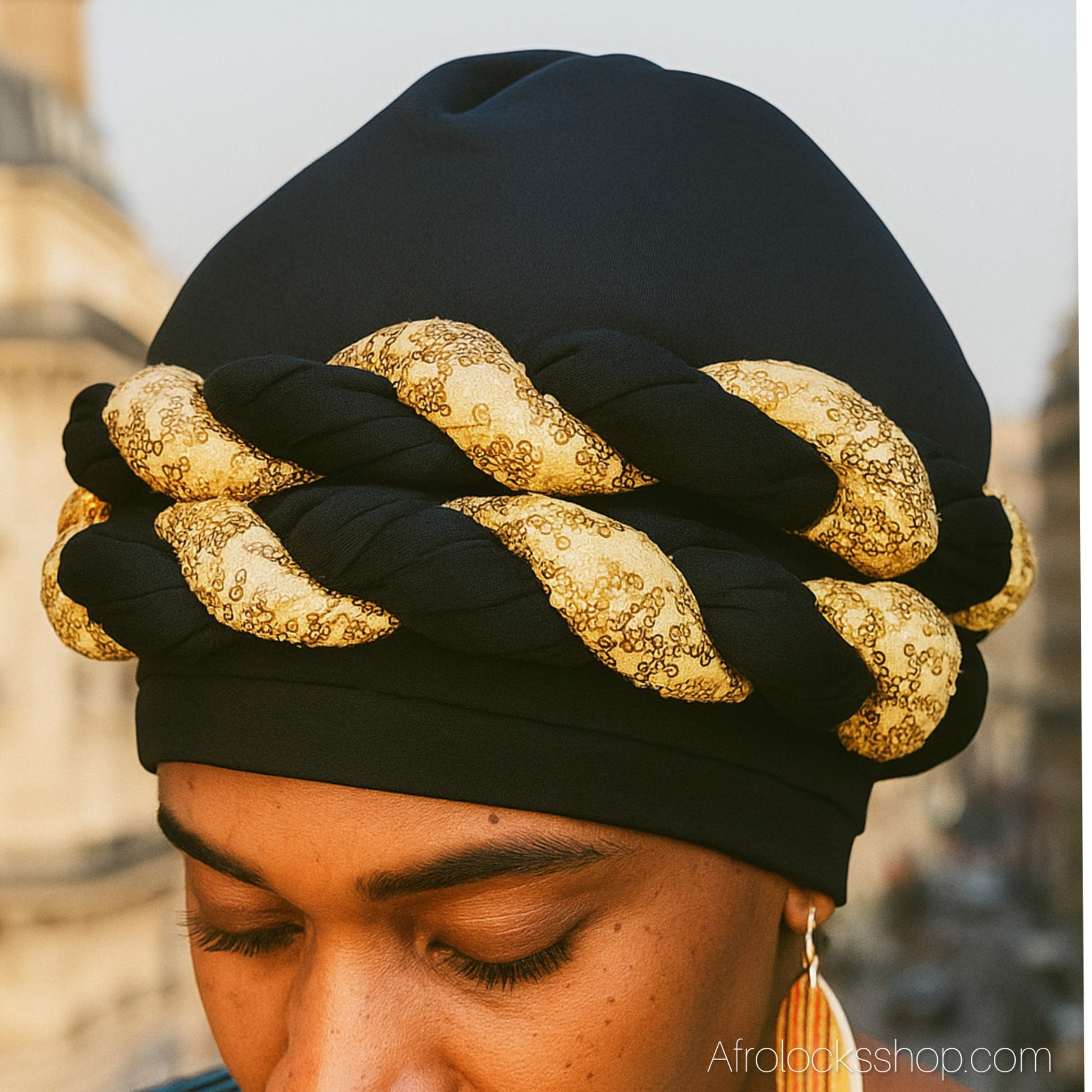 Turban africain torsadé doré – 7 coloris - Chapeau femme prêt-à-porter